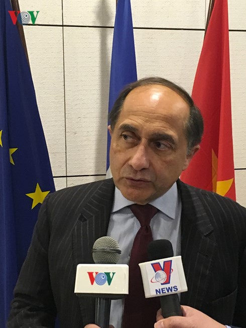 “Trước hết, thời điểm này là một dấu mốc quan trọng vì là 45 năm kỷ niệm quan hệ ngoại giao giữa Việt Nam và Pháp. Và nó đáng chú ý hơn khi gắn liền với giai đoạn của những hoạt động làm mới lại quan hệ song phương như hiện nay. Từ sau chuyến thăm của Tổng thống Hollande đến Việt Nam, hai nước ngày càng có nhiều hơn những trao đổi và những chuyến thăm. Chúng ta đang ở trong một giai đoạn rất tích cực cho sự tiến triển của quan hệ hai nước. Nước Pháp hiện nay đang tái triển khai các mối quan hệ trong khu vực châu Á và rất quan tâm đến những nước mà Pháp đã có quan hệ lâu đời và được Pháp đánh giá là giữ vai trò chiến lược trong khu vực như Việt Nam. Ngoài ra, còn có sự quan tâm của Pháp trong lĩnh vực đầu tư, thương mại với Việt Nam bởi mặc dù có các quan hệ lịch sử nhưng Pháp hiện vẫn đứng sau Đức hay nhiều nước châu Âu khác trong quan hệ đầu tư, thương mại với Việt Nam”, ông Jean-Francois Di Meglio phân tích thêm.