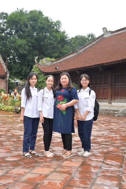 Cô Trần Lệ Khanh - Hiệu trưởng THCS Lĩnh Nam cùng học sinh |