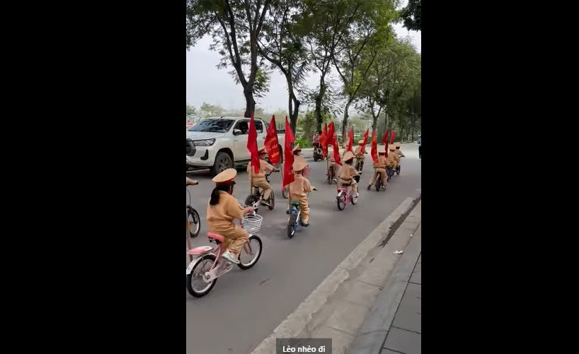Mới đây, trên mạng xã hội có chia sẻ đoạn clip ghi lại khoảnh khắc một nhóm trẻ mầm non hóa thân “cảnh sát nhí” đi xe đạp diễu hành trên đường khiến dân mạng vô cùng thích thú.