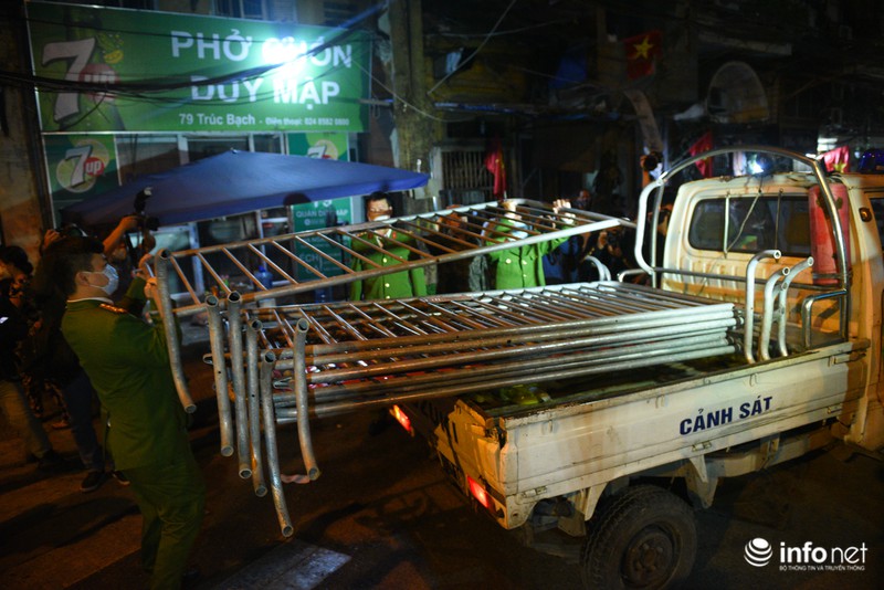 Đúng 21h05 ngày 20/3, khu phố Trúc Bạch (phường Trúc Bạch, quận Ba Đình) bắt đầu được gỡ bỏ rào chắn phong tỏa. Hết thời hạn cách ly, người dân trở lại cuộc sống bình thường.