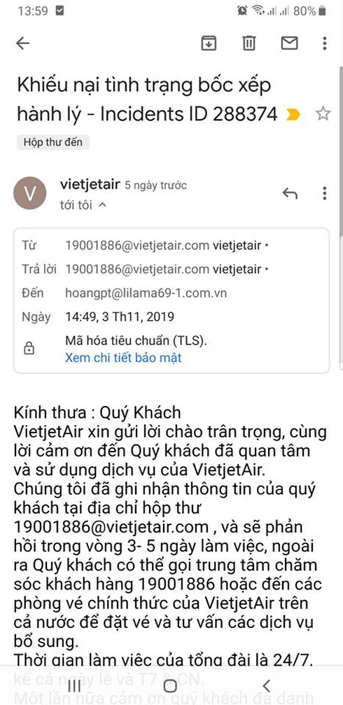 Đại diện truyền thông Vietjet đã tiếp nhận thông tin và cho biết sẽ kiểm tra nội bộ ngay và sẽ phối hợp với các bên để xử lý sự việc.
