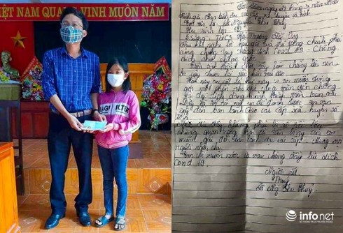 Hôm nay em viết lá thư này vì em muốn đóng góp một phần nho nhỏ cùng toàn dân chống lại đại dịch đang hoành hành trên toàn cầu. Đây là số tiền mà em để dành được, em xin gửi đến ban lãnh đạo các cấp xã, huyện và tỉnh.