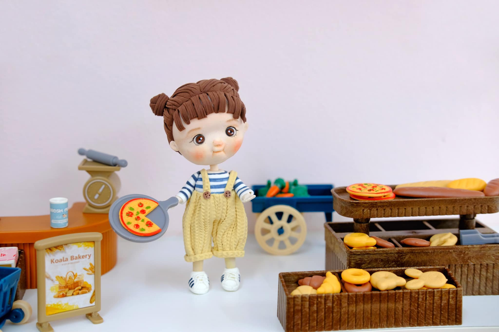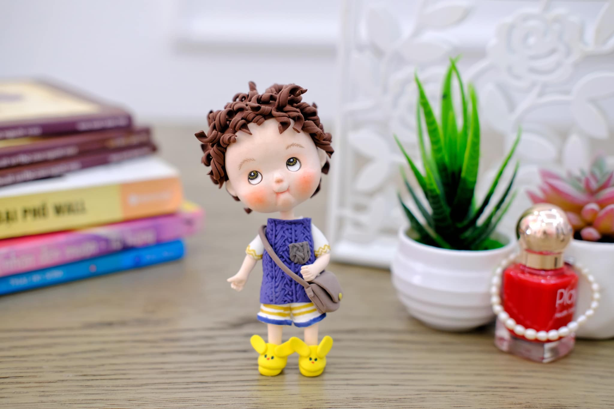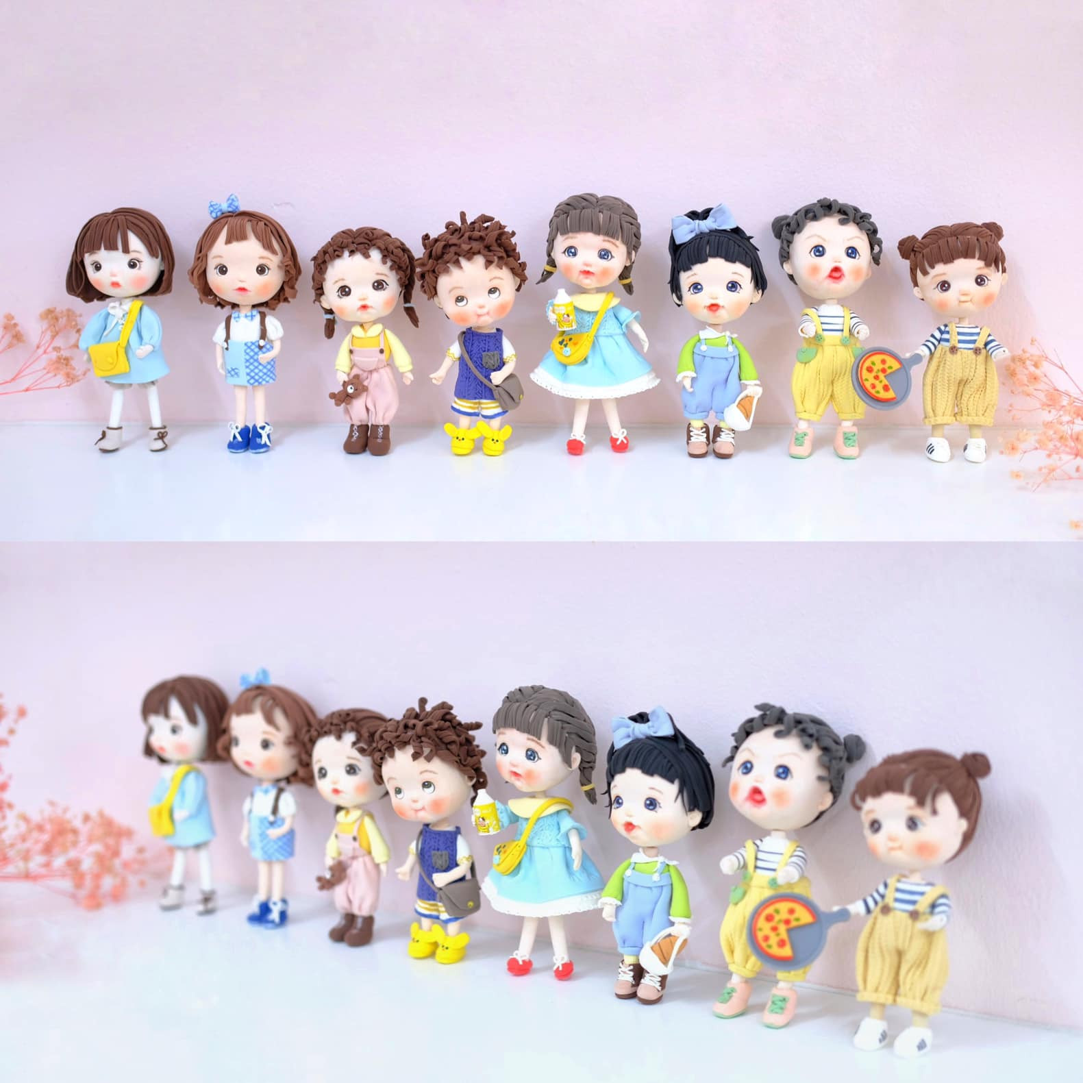 “Do tính chất công việc nên mình có tham gia bộ môn nặn này một thời gian. Mình dùng đất sét tự khô, sử dụng dụng cụ tạo hình để nặn ra nhân vật mà mình thích. Nặn xong để búp bê tự khô rất tiện, không cần nung. Mình hay xem ảnh búp bê thật để lấy ý tưởng về kiểu tóc và trang phục”, Dương chia sẻ.