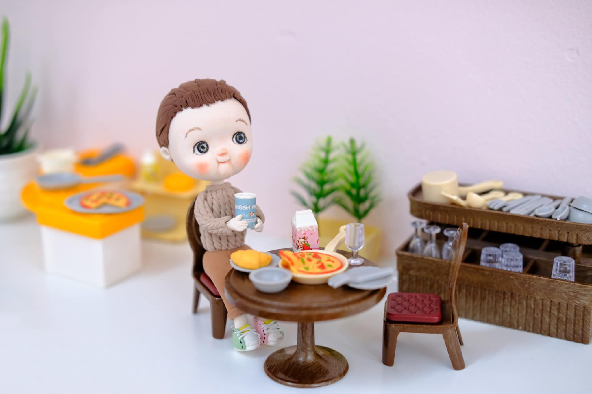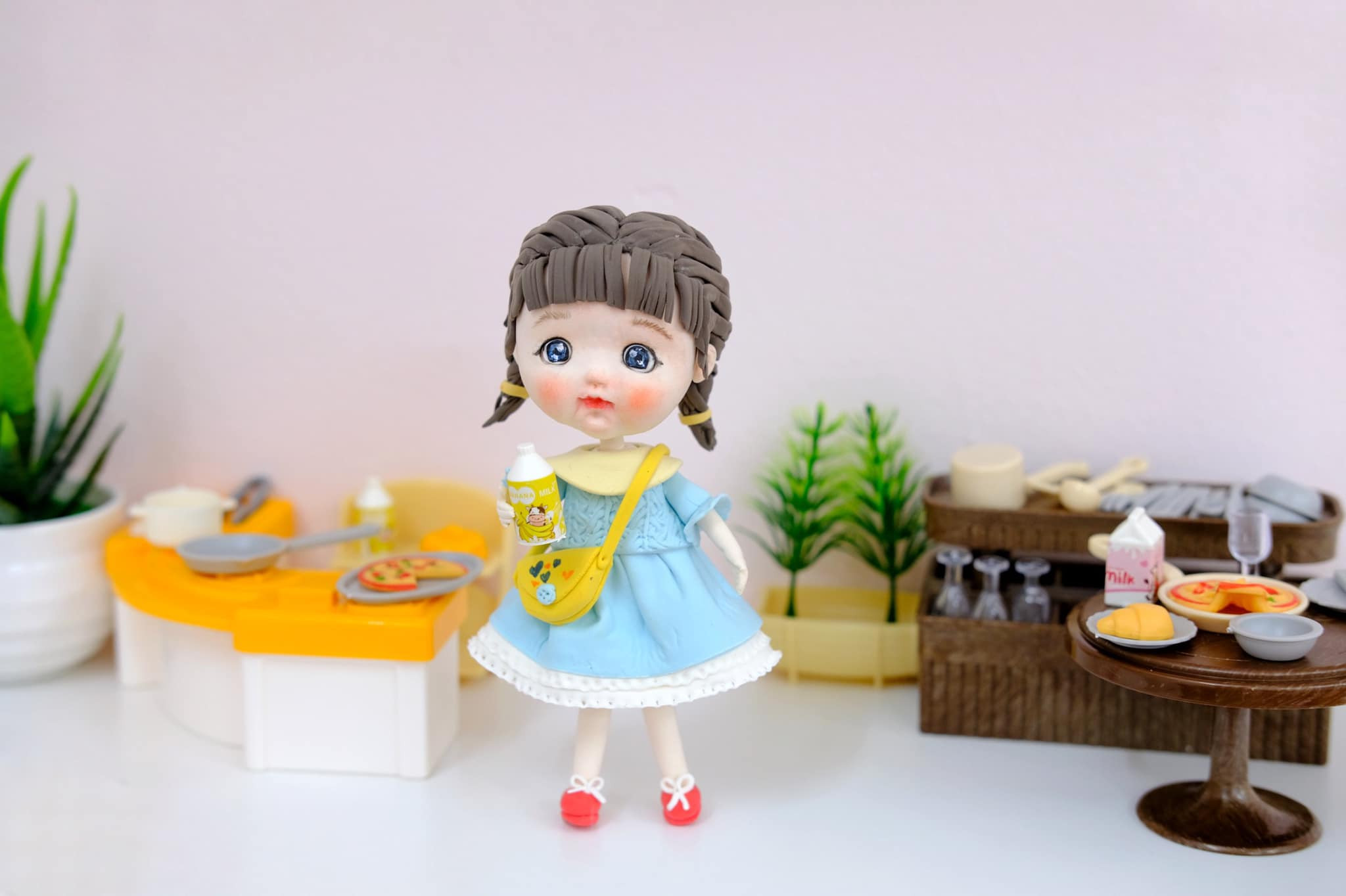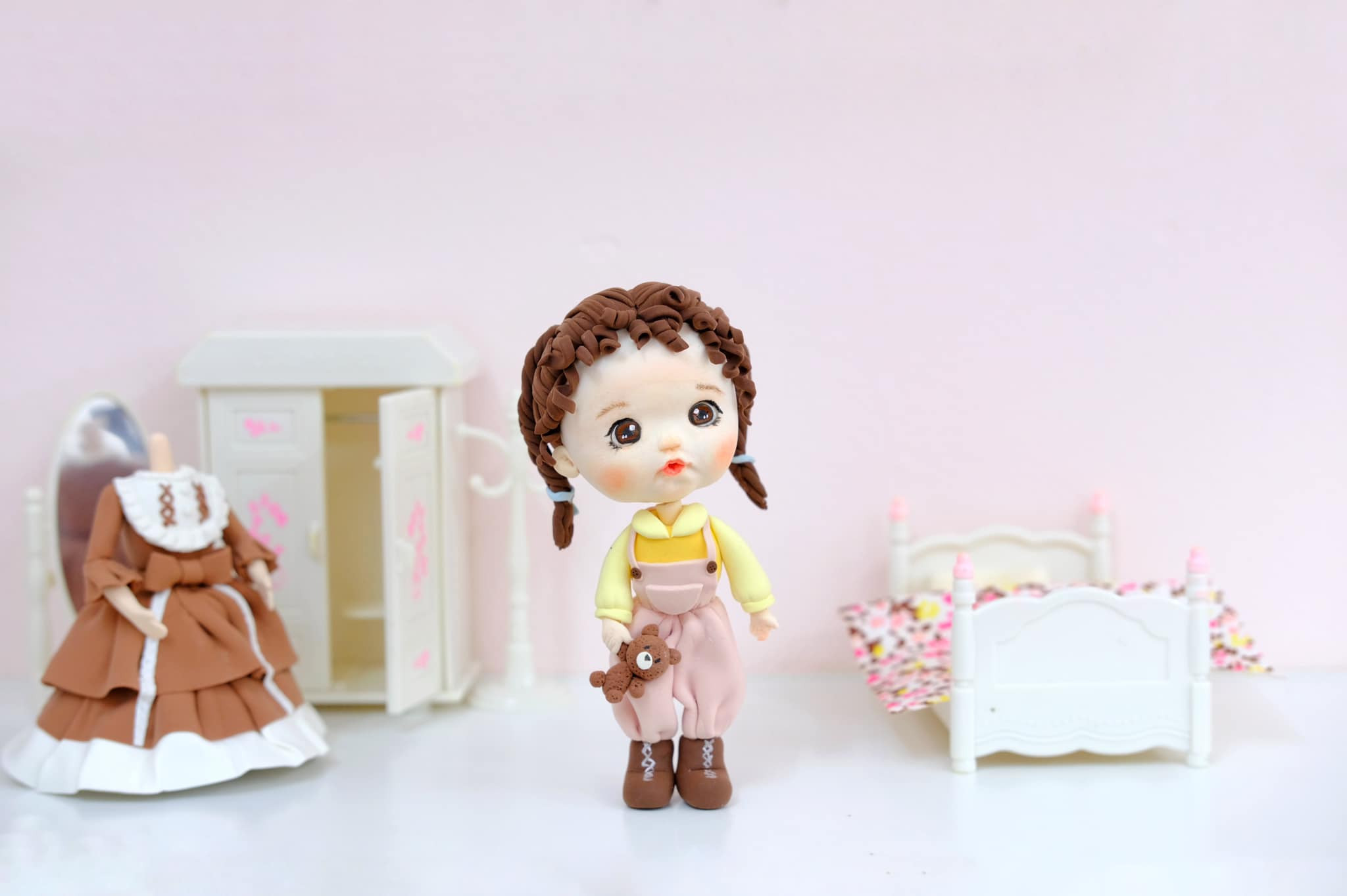 “Do tính chất công việc nên mình có tham gia bộ môn nặn này một thời gian. Mình dùng đất sét tự khô, sử dụng dụng cụ tạo hình để nặn ra nhân vật mà mình thích. Nặn xong để búp bê tự khô rất tiện, không cần nung. Mình hay xem ảnh búp bê thật để lấy ý tưởng về kiểu tóc và trang phục”, Dương chia sẻ.