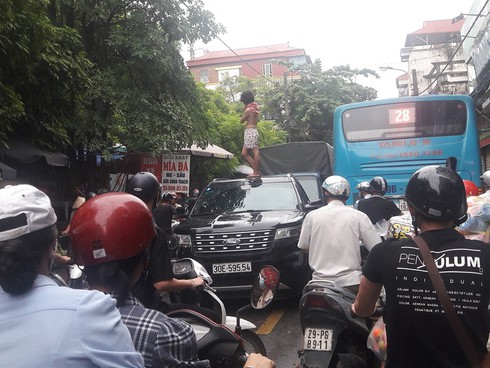 Theo vị lãnh đạo Công an quận Bắc Từ Liêm, Hà Nội, vào khoảng 11h ngày 3/10, trên phố Trần Cung đoạn gần cây xăng, hướng đi từ đường Hoàng Quốc Việt đến đường Phạm Văn Đồng, phường Cổ Nhuế 1, Bắc Từ Liêm, Hà Nội có nhiều phương tiện và người lưu thông, bất ngờ có cô gái leo đỉnh chiếc xe ô tô 7 chỗ màu đen hiệu Ford mang BKS: 30E.XXX la hét, múa may với biểu hiện nghi bị ngáo đá.