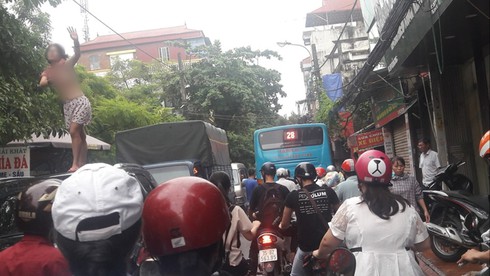 Nhiều người vì tò mò nên đã dừng phương tiện lại theo dõi. Do con phố vốn chật hẹp nên đã gây ùn tắc nặng. Các xe ô tô nối nhau kéo dài đến 2 đầu đường. Nhiều người cho biết, cô gái là người sinh sống trên địa bàn.