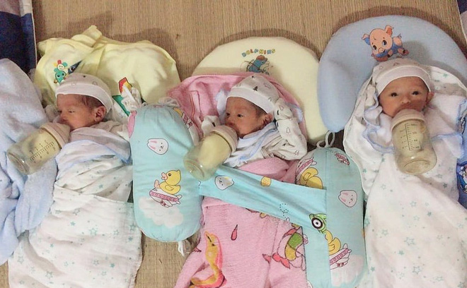 "Thực ra, việc gây áp lực nhất với em không phải việc trông con mà là vấn đề kinh tế. Trước khi sinh 3 con, em phải nằm viện và ở Hà Nội chờ 2 tháng nến tốn kém nhiều. Sinh xong, các con ăn sữa ngoài và đóng bỉm 24/24, công thêm chi phí tiêm phòng... khiến 2 vợ chồng quay cuồng.