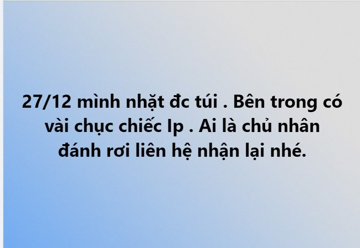 Trao đổi với phóng viên Infonet, người đăng bài tìm kiếm chủ nhân của chiếc ba lô bị đánh rơi là chị Bùi Thu Hằng (sinh năm 1990, ở quận Nam Từ Liêm, TP Hà Nội) cho biết: "Hôm 27/12, chú của mình đã nhặt được một chiếc ba lô màu đen, bên trong có chứa nhiều chiếc điện thoại di động và đưa về cho mình bảo để xem có ai tìm thì trả lại cho họ. Tất cả đều là điện thoại đã qua sử dụng, không có sim và mở khóa sẵn. Mình đoán là của một bạn làm ở cửa hàng điện thoại nào đó đánh rơi, chắc chắn có dùng mạng xã hội, nên đăng lên nhờ mọi người chia sẻ để bạn ấy nhanh chóng tìm được lại đồ".