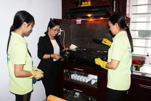 Các nhân viên của cô Hà trong một buổi dọn dẹp nhà cửa. |