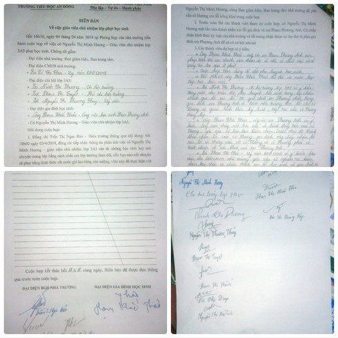 Vào chiều cùng ngày, Ban giám hiệu nhà trường đã mời đại diện gia đình cùng em Phương Anh, Ban đại diện cha mẹ học sinh, Chi hội lớp 3A5, cô Hương, Ban trung tâm nhà trường đến làm việc để yêu cô Hương xin lỗi công khai tại đây.