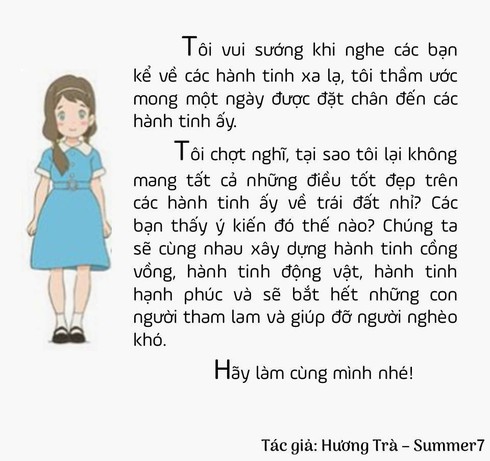 Cô Quỳnh cho biết, mọi ý tưởng, câu viết của học sinh hầu như được cô giữ nguyên, chỉ sửa lỗi chính tả cho các em. Không chỉ viết văn, cô Quỳnh còn cho các bé làm thơ.