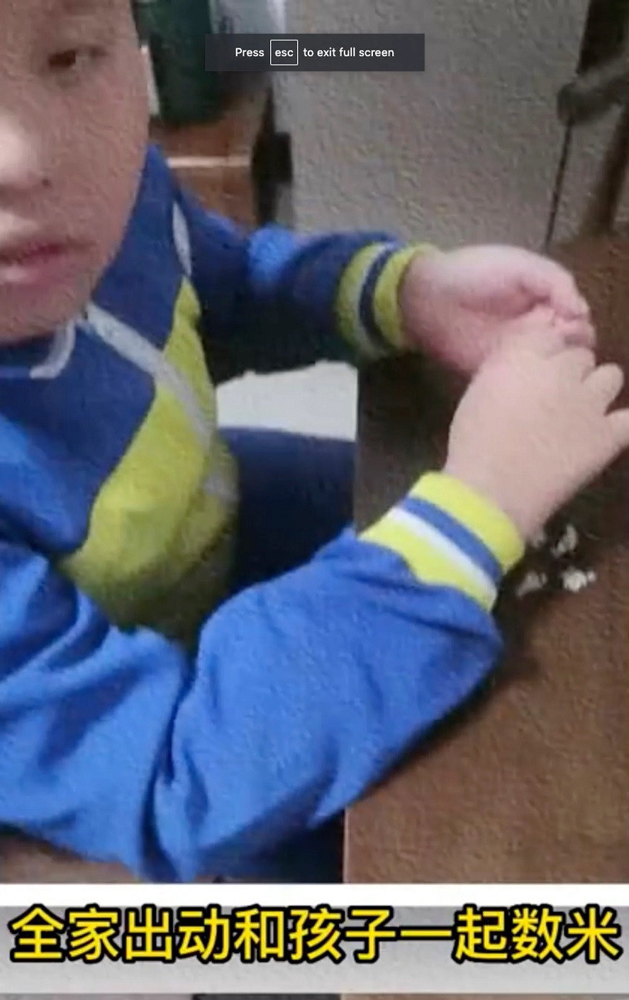 “Đây là bài tập về nhà của nhà trường, đếm 10.000 hạt gạo. Trời ơi! Tôi đã phải huy động cả gia đình vào hỗ trợ”, tiếng nói của nam phụ huynh vang lên trong video.