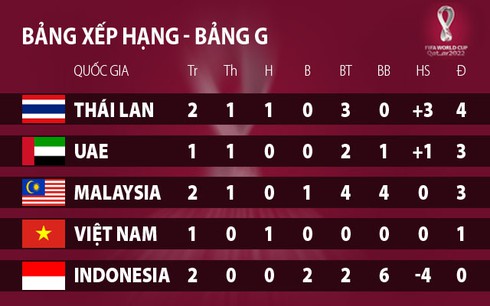 Bảng xếp hạng bảng G (vòng loại World Cup 2022 khu vực châu Á). |