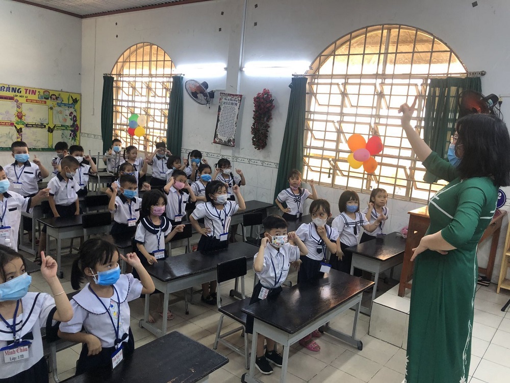 Học sinh lớp 1 Trường Tiểu học Lê Văn Thọ, Quận 12, TP.HCM. (Ảnh: Phan Nga)