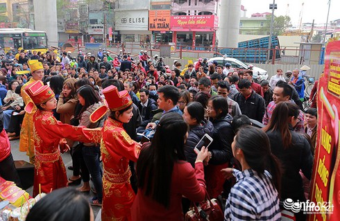 Dòng người chen kín phố Trần Nhân Tông để chờ mua vàng ngày Thần Tài. |
