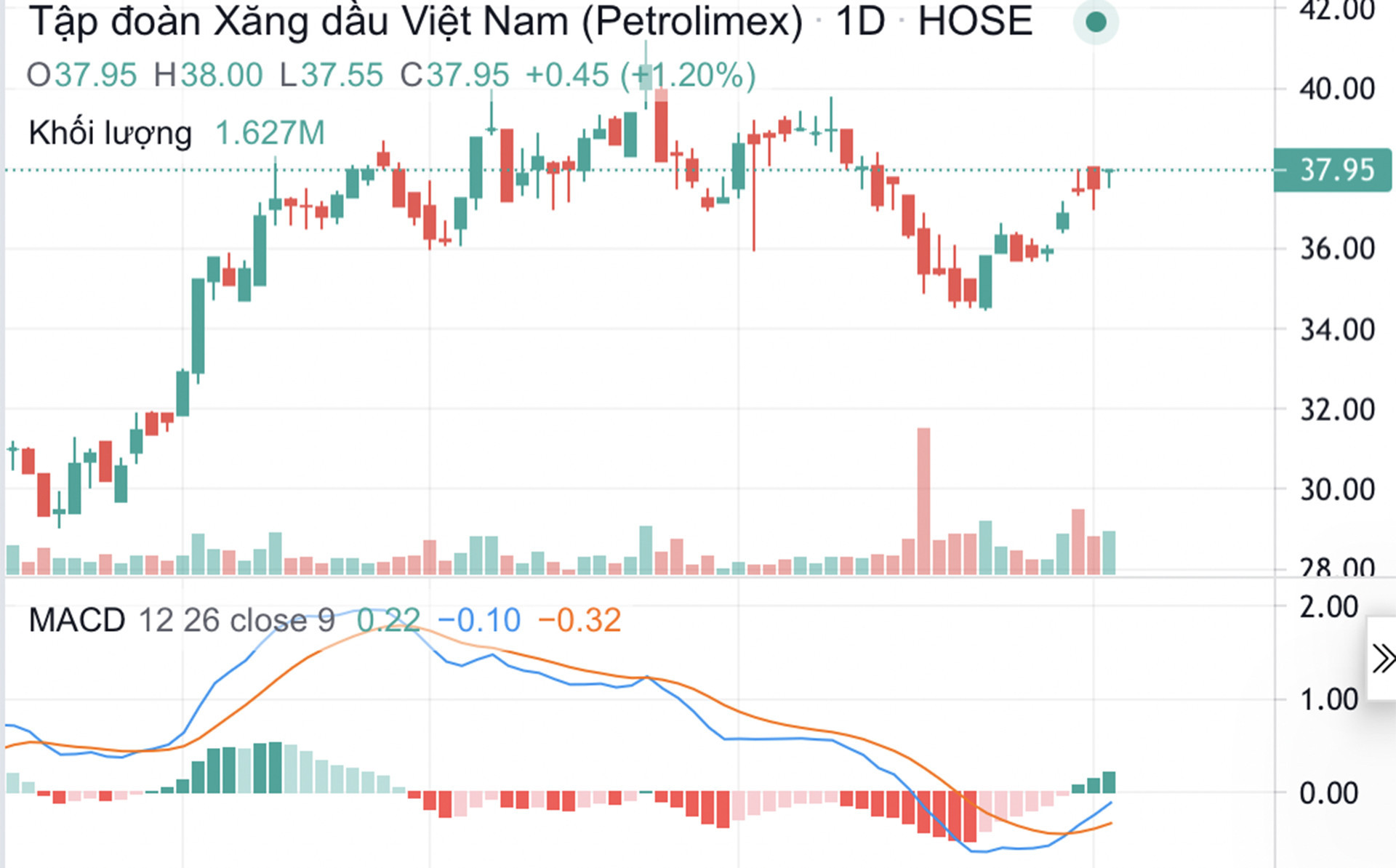 Phiên giao dịch 4/4, cổ phiếu Petrolimex (PLX) tiếp tục tăng thêm 1,2% lên vùng đỉnh 6 tháng. Đây là phiên tăng thứ 7 trong 10 phiên vừa qua, từ mức 34.700 đồng/cp lên 37.950 đồng/cp.