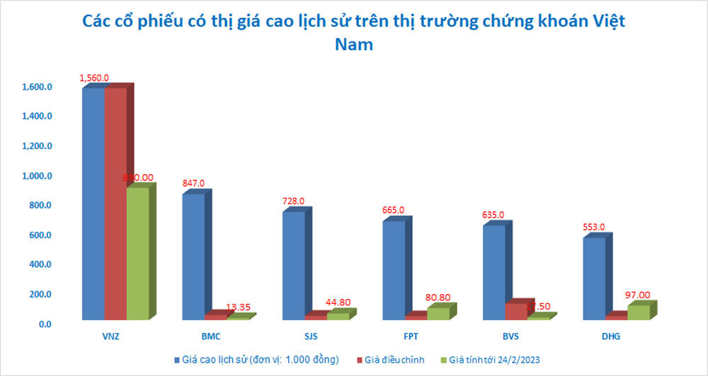 Mặc dù quay đầu giảm khá mạnh, bốc hơi 43% trong hơn tuần qua, nhưng VNZ vẫn là cổ phiếu có thị giá cao nhất trong lịch sử thị trường chứng khoán Việt Nam suốt 20 năm qua, cao hơn những mã như BMC (từng đạt mức 847.000 đồng/cp thời hoàng kim); hay SJS từng có giá 728.000 đồng/cp; FPT 665.000 đồng/cp; BVS 635.000 đồng/cp.