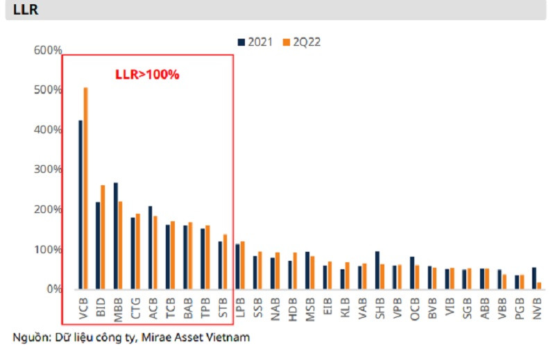 “Thêm vào đó, một số ngân hàng cũng cho rằng họ đã trích lập đầy đủ cho nợ tái cơ cấu trước kỳ hạn (2023). Chúng tôi cho rằng các thông tin này có mức độ tin cậy nhất định. Vì vậy, nếu tỷ lệ nợ tái cơ cấu có thể trở về lại nhóm 1 sau thời gian ân hạn, hoàn thành “giai đoạn thử thách”, hay tất toán trước hạn cao hơn so với dự phóng thì chi phí tín dụng có thể đã đạt đỉnh. Như trong 6T2022, dựa trên sự phục hồi tích cực của các khoản nợ tái cơ cấu, một số ngân hàng đã có thể hoàn nhập các khoản dự phòng đã trích lập cho nợ tái cơ cấu. Vì vậy, nhà đầu tư vẫn nên thận trong nhưng không quá bi quan về hoạt động chung của ngành”, Mirae Asset lưu ý.