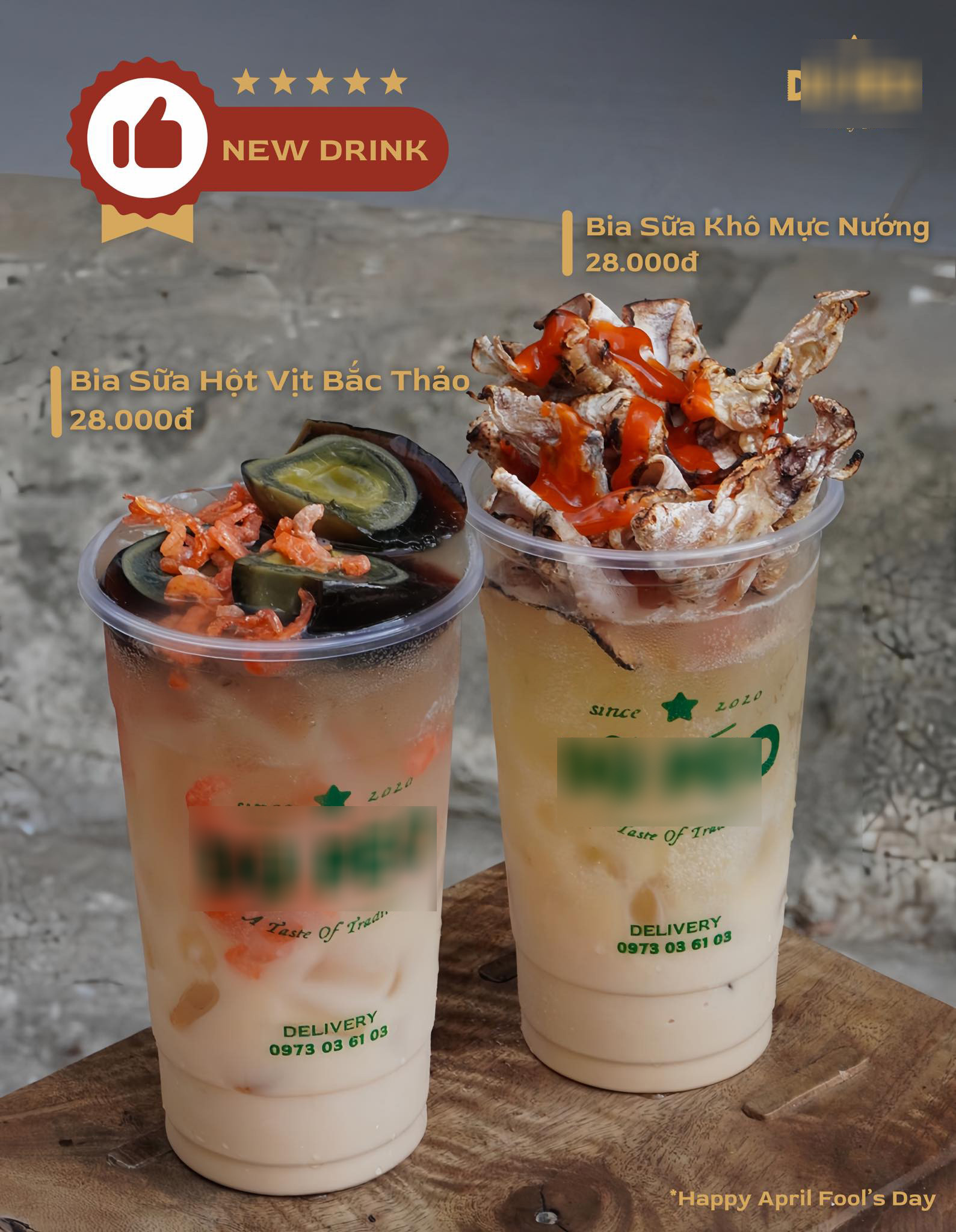 Tuy nhiên, theo tìm hiểu của phóng viên VietNamNet, những món trà sữa, trà chanh trứng vịt lộn hay bia sữa mực khô,… đang gây “bão” mạng thực tế chỉ là sản phẩm sáng tạo nhằm mục đích giải trí, tăng tương tác của một số quán đồ uống vào ngày Cá tháng Tư.