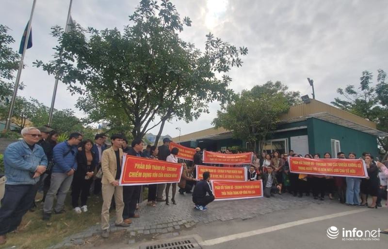 Quá bức xúc, sáng 28/11 nhiều chủ sở hữu đã cùng nhau kéo đến trụ sở của Công ty Thành Đô ở Tây Hồ (Hà Nội) để căng băng rôn đòi quyền lợi... |
