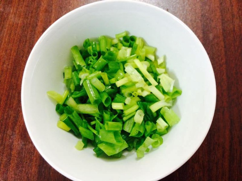 Bước 2: Phần hành hoa sơ chế sạch thái nhỏ, để riêng 1 phần cọng trắng của hành.