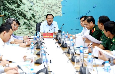 Bộ trưởngBộ NN&PTNT Nguyễn Xuân Cường- Phó Trưởng ban Chỉ đạo Trung ương về Phòng chống thiên tai chỉ đạo tại cuộc họp. |