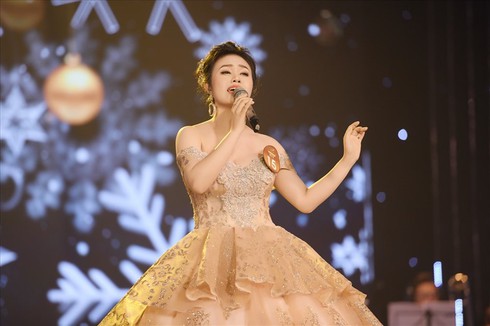 Với chất giọng cao vút, bản lĩnh sân khấu vững vàng, Lương Hải Yến hóa thân thành nàng công chúa xinh đẹp trình bày ca khúc "Em nhớ chàng" xuất sắc. |