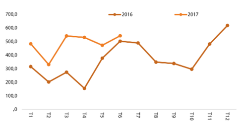 Sản lượng xe Mercedes – Benz năm 2016 và 2017 (đvt: chiếc). Nguồn VAMA, VDSC. |