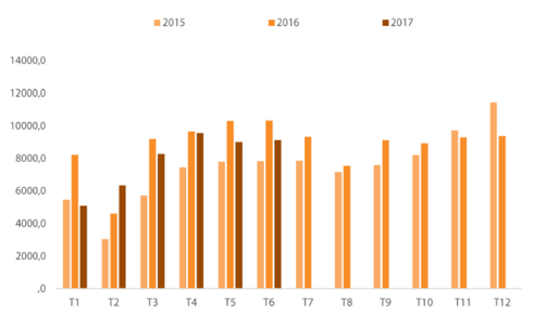 Sản lượng tiêu thụ xe thương mại năm 2015 - 2017 (đvt: chiếc). Nguồn: VAMA, VDSC. |