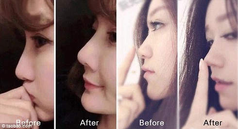 Hình ảnh quảng cáo sau khi sử dụng bộ dụng cụ nâng mũi. Ảnh: Taobao. |