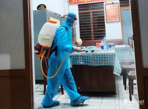 Phun thuốc sát khuẩn tại Công an phường Nại Hiên Đông để phòng dịch Covid-19 (Ảnh do Công an Đà Nẵng cung cấp) |
