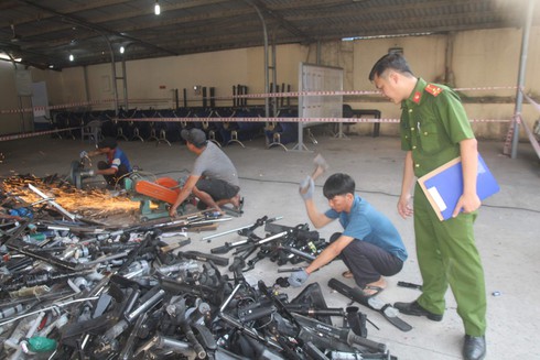 Để tiêu hủy, lực lượng chức năng đã cắt vụn hơn 450 khẩu súng các loại, hơn 2.400 công cụ hỗ trợ là dao, lê, mã tấu.