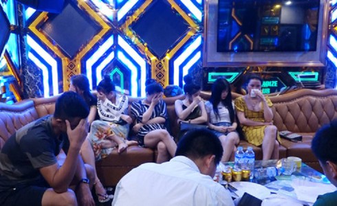 Các đối tượng bay lắc, dương tính với ma túy bị bắt tại cơ sở Karaoke Thiên Đường II. |