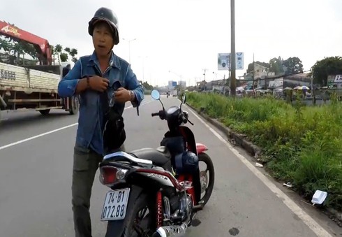 Người đàn ông lạ mặt đuổi theo, chặn đầu xe người dân ghi hình và đe dọa, buộc xóa ảnh. |