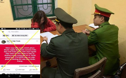 Ngày 1/2, thông tin từ Công an Thanh Hóa cho biết: Chiều 31/1, Công an TP Thanh Hóa (Thanh Hóa) đã triệu tập Hà Thị Việt Trinh (SN 1995, trú phường Nam Ngạn, TP Thanh Hóa) đến cơ quan để làm rõ về việc đưa thông tin sai sự thật về dịch bệnh Corona trên facebook cá nhân.
