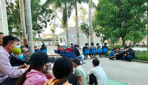 Người nhà sản phụ Hồ Thị M. tập trung tại bệnh viện để theo dõi quá trình khám nghiệm. |