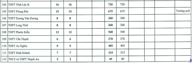 Dưới đây là chỉ tiêu cụ thể của từng trường