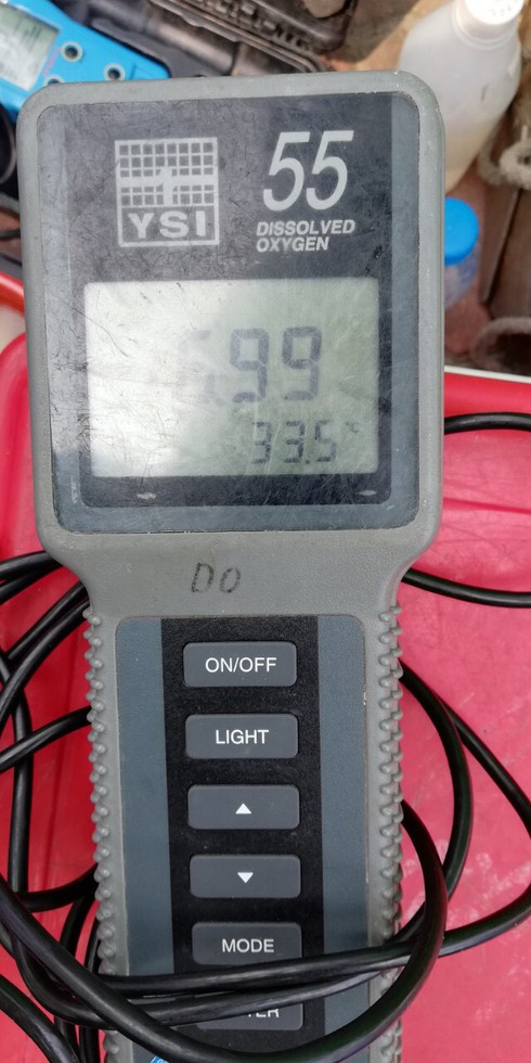 Bên ngoài khu thí điểm DO=0.59 mg/l.(Đo vào ban đêm). |