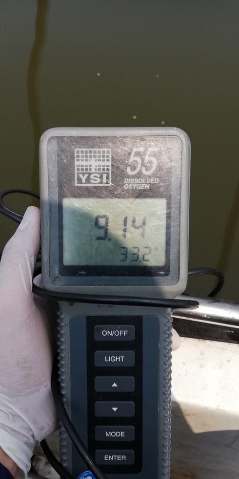 Bên trong khu thí điểm DO=9.14 mg/l(Đo vào ban ngày). |