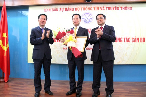Chiều ngày 27/7/2018, tại Hà Nội, Bộ TT&TT đã tổ chức Hội nghị triển khai các quyết định của Bộ Chính trị về công tác cán bộ. Đến dự có các đồng chí: Phạm Minh Chính, Ủy viên Bộ Chính trị, Bí thư Trung ương Đảng, Trưởng Ban Tổ chức Trung ương, Võ Văn Thưởng, Uỷ viên Bộ Chính trị, Bí thư Trung ương Đảng, Trưởng Ban Tuyên giáo TƯ, Nguyễn Thanh Bình, Uỷ viên TƯ Đảng, Phó Trưởng Ban thường trực Ban Tổ chức TƯ, Thượng tướng Nguyễn Trọng Nghĩa, Ủy viên TƯ Đảng, Phó Chủ nhiệm Tổng cục Chính trị QĐNDVN cùng đại diện lãnh đạo các Ban Đảng, các Bộ, lãnh đạo Bộ TT&TT, lãnh đạo các cơ quan, đơn vị, doanh nghiệp thuộc Bộ. Thay mặt Bộ Chính trị, đồng chí Phạm Minh Chính đã trao Quyết định của Bộ Chính trị phân công đồng chí Nguyễn Mạnh Hùng, Uỷ viên Trung ương Đảng, Uỷ viên Quân uỷ Trung ương, Phó Bí thư Đảng uỷ, Chủ tịch kiêm Tổng giám đốc Tập đoàn Công nghiệp – Viễn thông Quân đội giữ chức Quyền Bộ trưởng, Bí thư Ban cán sự đảng Bộ TT&TT kiêm Phó Ban Tuyên giáo Trung ương.