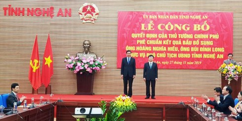 Trước đó, ngày 19/11/2019, Thủ tướng chính phủ Nguyễn Xuân Phúc đã ký Quyết định số 1666 và 1668 phê chuẩn kết quả bầu bổ sung chức vụ Phó chủ tịch UBND tỉnh Nghệ An nhiệm kỳ 2016 - 2021 đối với ông Hoàng Nghĩa Hiếu - Giám đốc Sở Nông nghiệp và Phát triển Nông thôn và ông Bùi Đình Long - Bí thư Huyện ủy Nam Đàn.