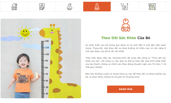 Ngoài ra, với công cụ “Theo dõi sức khỏe tại nhà”, mẹ bầu sẽ được tư vấn về tình trạng sức khỏe thai kì dựa trên chỉ số khối cơ thể BMI trước khi mang thai và biểu đồ cân nặng tăng lên trong suốt thai kì. Ngoài ra, công cụ cũng sẽ căn cứ vào biểu đồ Z-core về cân nặng và chiều cao theo tuổi để đánh giá tình trạng sức khỏe của trẻ từ sơ sinh đến dưới 5 tuổi.