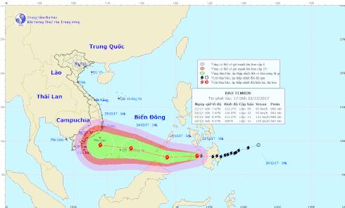 Dự báo trong 24 giờ tới, bão di chuyển chủ yếu theo hướng Tây, tốc độ di chuyển nhanh (20km/h) và có khả năng mạnh lên. Đến 16 giờ ngày 23/12, vị trí tâm bão ở vào khoảng 7,6 độ Vĩ Bắc; 118,8 độ Kinh Đông, cách đảo Pa-la-oan (Philippin) khoảng 140km về phía Đông Nam. Sức gió mạnh nhất ở vùng gần tâm bão mạnh cấp 9-10 (75-100km/giờ), giật cấp 13.