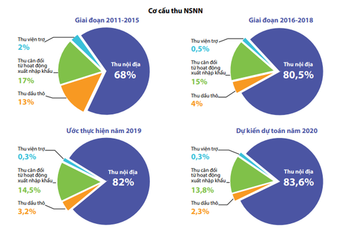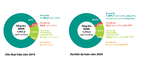 Bức tranh tổng thể về ngân sách nhà nước (NSNN) năm 2020 cho thấy, dự kiến dự toán thu NSNN là 1.512,3 nghìn tỷ đồng, tăng 3,8% so với ước thực hiện năm 2019; tỷ lệ huy động vào NSNN khoảng 22,2% GDP, trong đó từ thuế, phí khoảng 19,4% GDP.