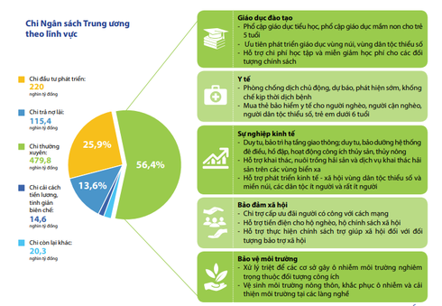 Dự kiến bội chi NSNN là 234,8 nghìn tỷ đồng, tương đương 3,44% GDP (bội chi ngân sách Trung ương 3,2% GDP, bội chi ngân sách địa phương 0,24% GDP)