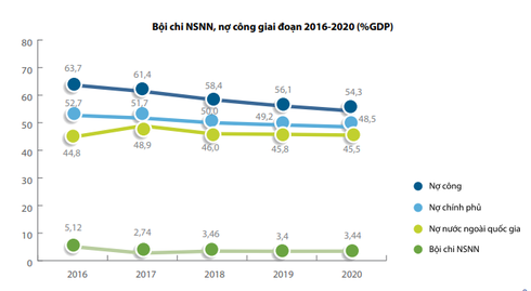 Dự kiến đến hết năm 2020, dư nợ công bằng 54,3% GDP, dư nợ Chính phủ bằng 48,5% GDP, dư nợ nước ngoài của quốc gia bằng 45,5 % GDP.