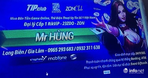 Nhằm lôi kéo con bạc và các đại lý cấp 2, Vũ Mạnh Hùng treo banner quảng cáo và đăng trên trang facebook cá nhân với nội dung “Mua bán tiền Game online, thẻ điện thoại uy tín số 1 Việt Nam – Đại lý cấp 1 RikVip – 23Zdo – Zon. Hùng cho biết, banner này được hệ thống thiết kế cho các đại lý.