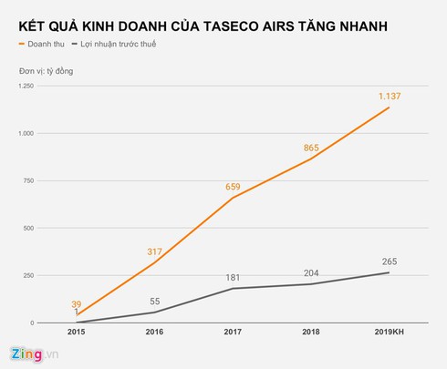 Năm 2015, Taseco Air mới đạt lần lượt 39 tỷ đồng doanh thu và hơn 1,4 tỷ lợi nhuận trước thuế.