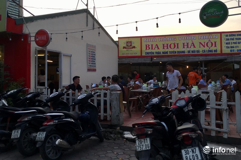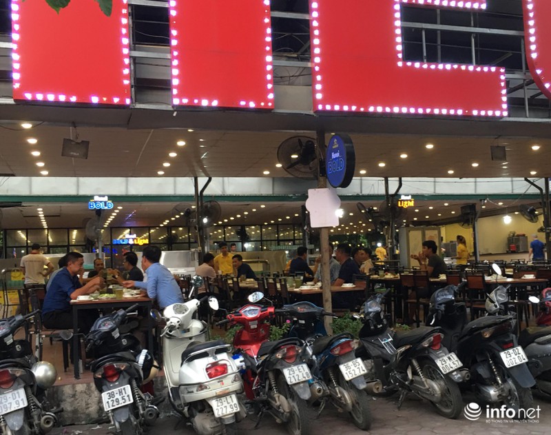 Những quán bia luôn tấp nập, kín mít xe của khách từ bên trong ra bên ngoài. |