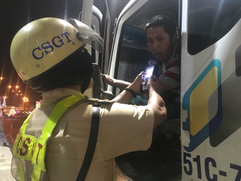 Cảnh sát giao thông kiểm tra nồng độ cồn 1 tài xế trong những đợt kiểm tra nồng độ cồn |